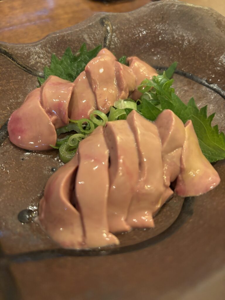 鶏の生レバー刺しも大人気!!当店では上肝刺しとしてお出しさせて頂いております!!たまに特上肝刺しもお出しさせて頂いております。美味しいですよ。